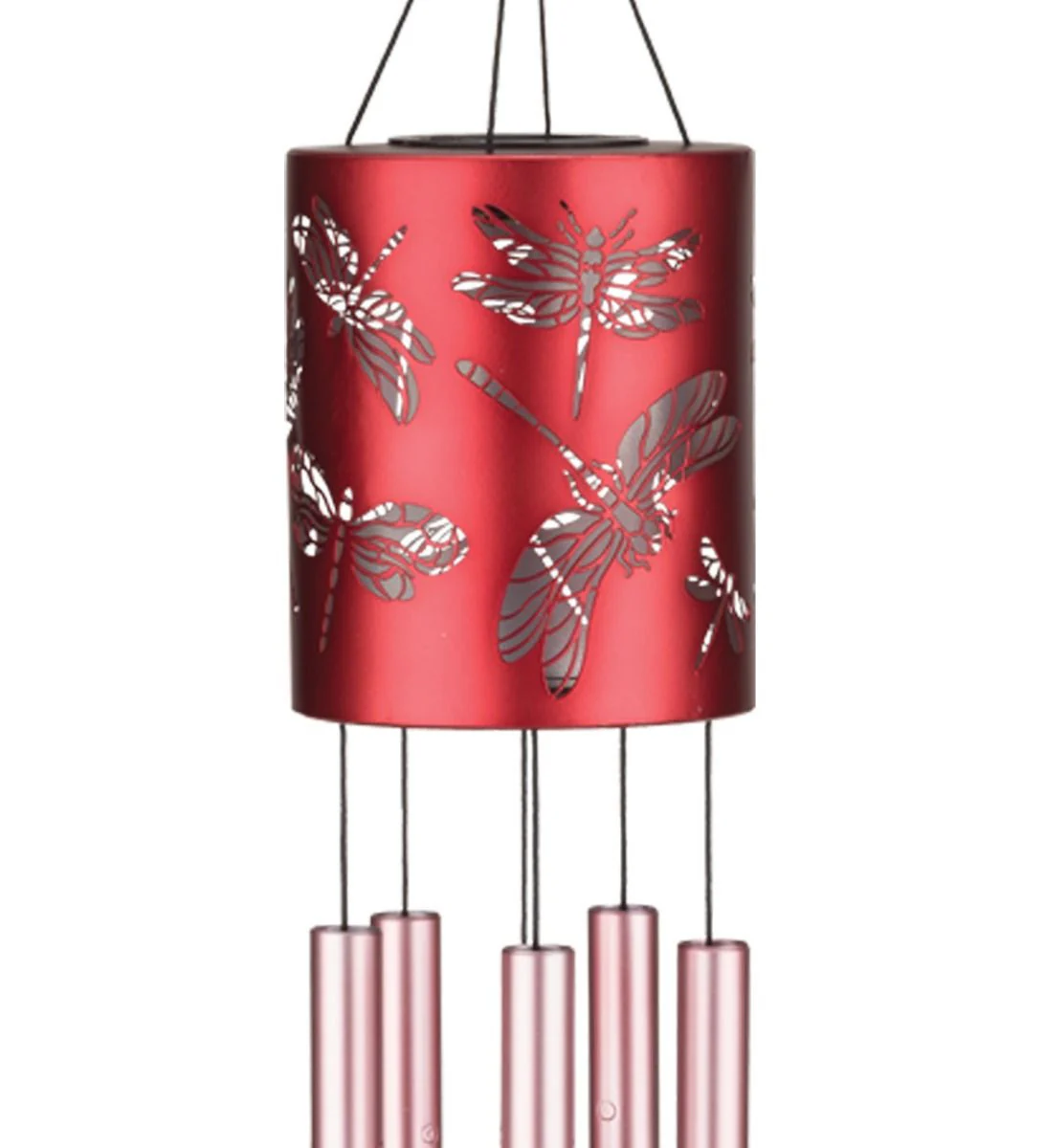 Enhance your garden with our enchanting Dragonfly Solar Powered LED Garden Chimes! Featuring a stunning dragonfly design, these chimes not only look beautiful but also create a delightful sound. A bright LED light shines down onto the metallic chime tubes and through the decorative openings in the upper canister, while the precision-tuned chimes produce a lovely melody.