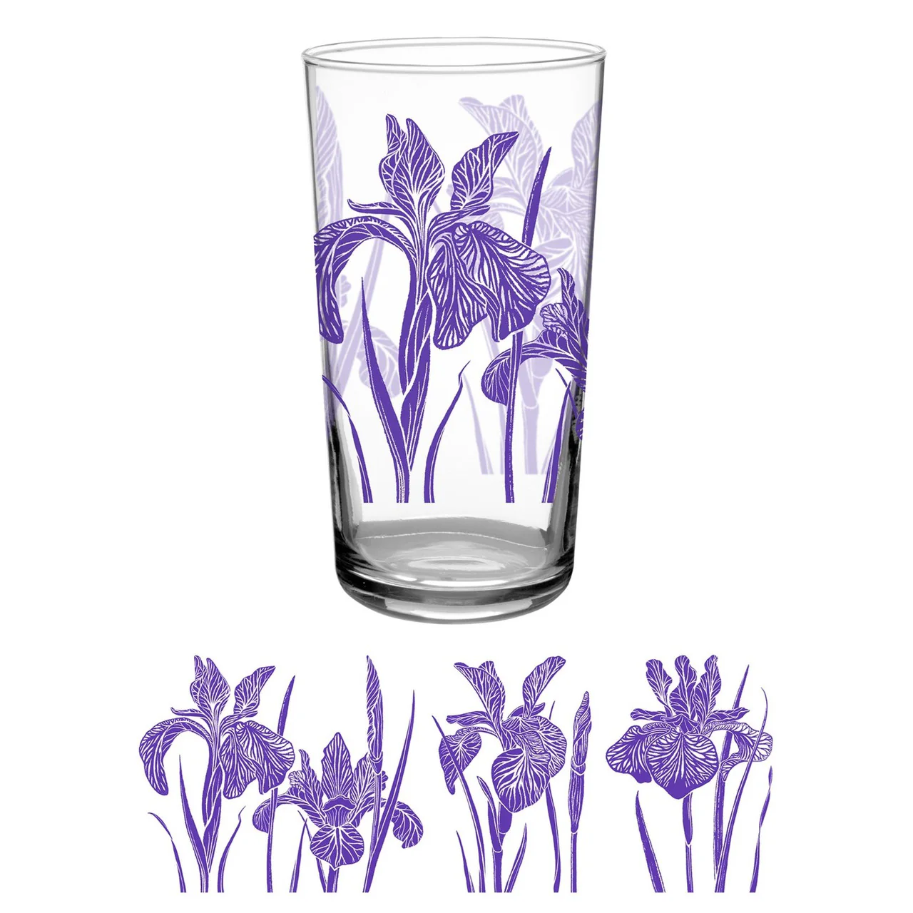 Vintage inspired glass tumbler with purple Iris print